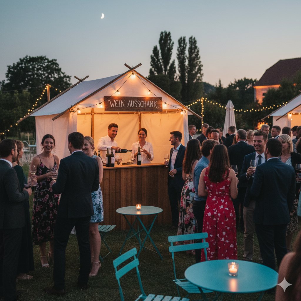 Wir sind gern mit einem kleinen Stand dabei und verwöhnen Ihre Gäste mit unseren erlesenen Spezialitäten. Ob nur mit Theke unter einem Sonnenschirm im Freien, oder mit Sitzgelegenheiten unter einem Pavillion, wir sind stets flexibel und freuen uns sehr auf Ihre individuelle Anfrage!